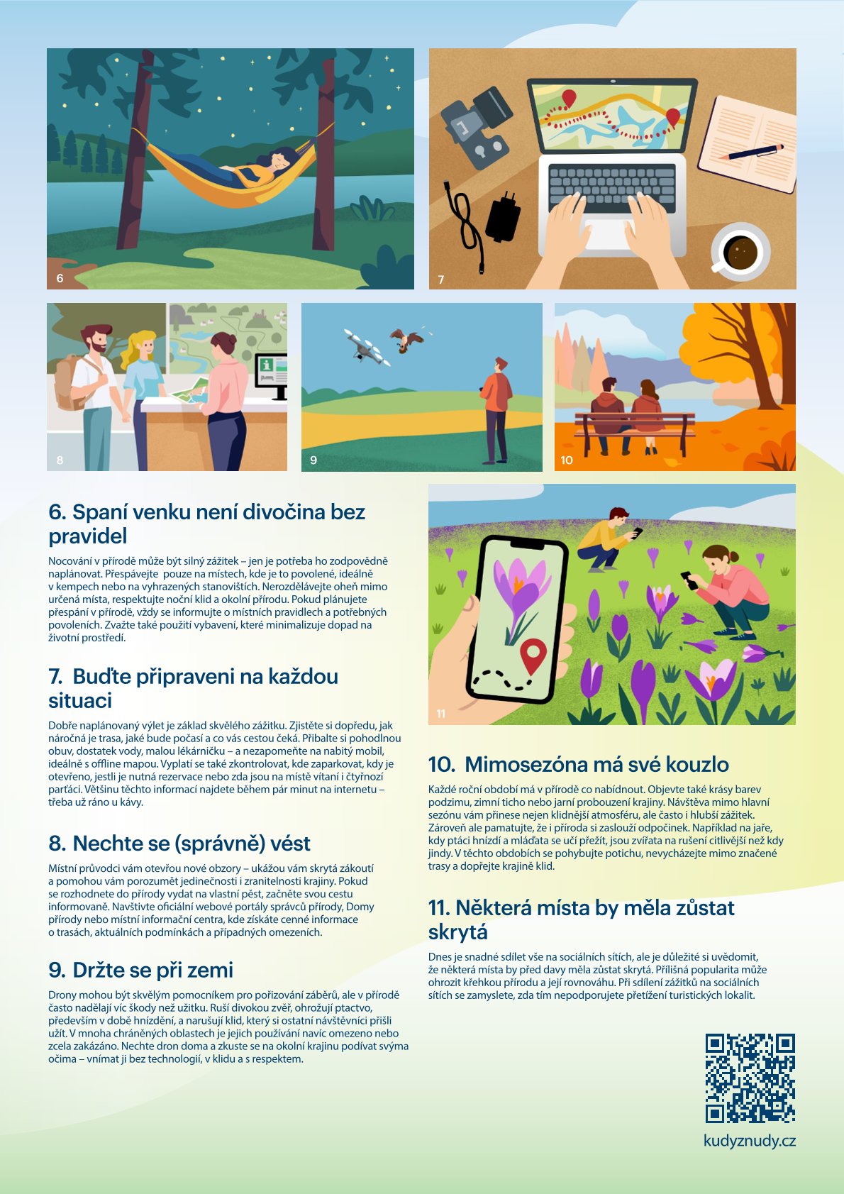 CzechTourism připravil přehledný „Manuál odpovědného turisty“, který připomíná základní pravidla, jak se chovat v přírodě ohleduplně a s respektem. Doporučení se týkají například pohybu po značených cestách, ochrany přírody, správného nakládání s odpady nebo ohleduplnosti k ostatním návštěvníkům i místní fauně a flóře. Prosíme návštěvníky Adršpašských skal, aby se těmito zásadami při návštěvě řídili a pomohli tak chránit toto jedinečné přírodní prostředí.