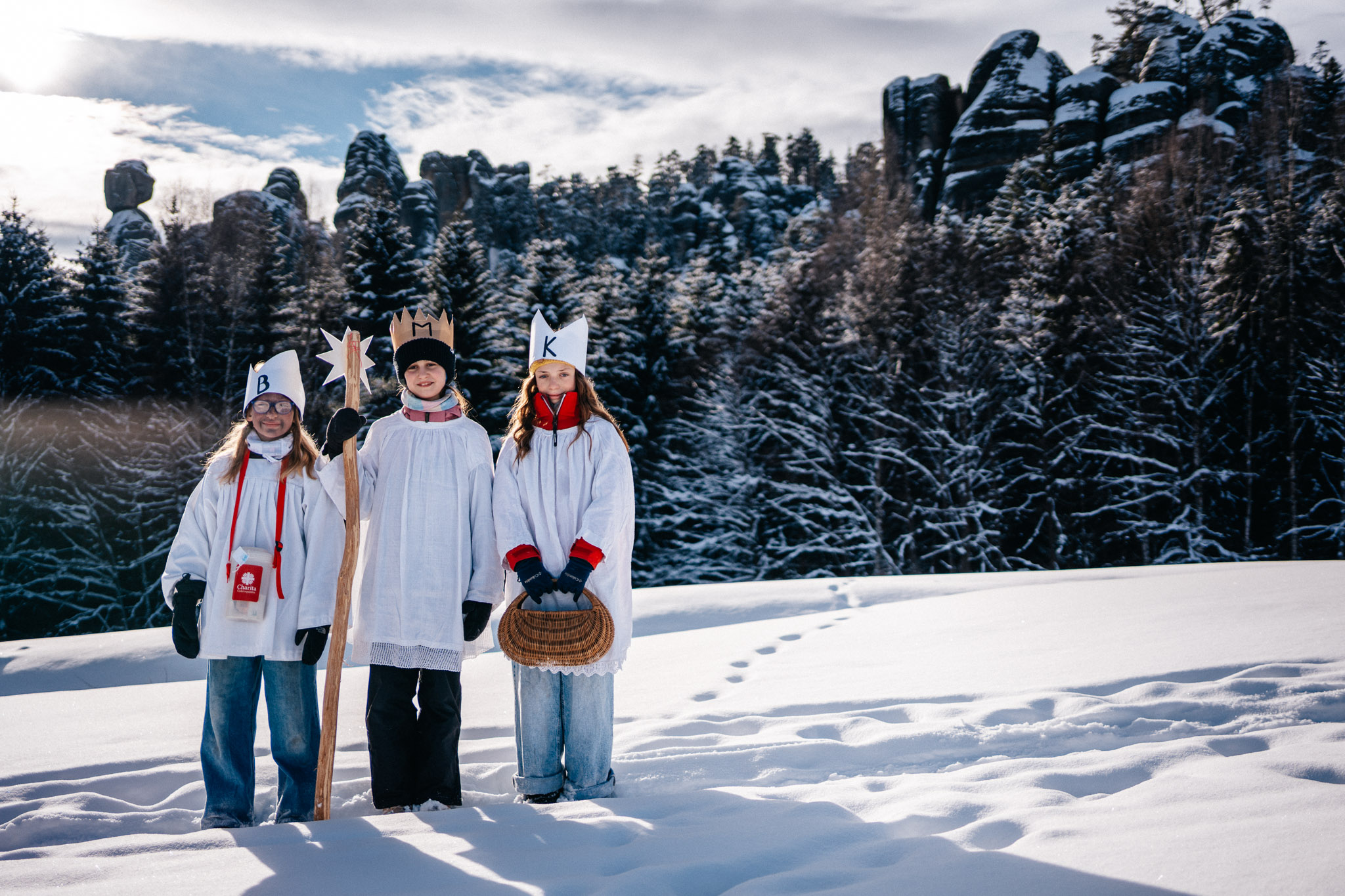 Sobotní mrazivé, ale slunečné počasí přálo zimní procházce, a taky třem králům, kteří vyrazili do ulic Adršpachu. Kačka Menšíková a Pavla Brandová vyrazily se svými malými kolednicemi a Františkem Dudou obejít vesnici a společně s vámi podpořit dobrou věc.